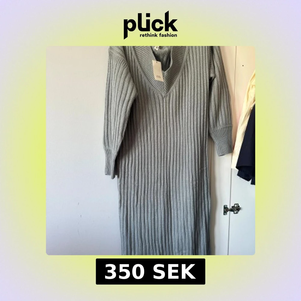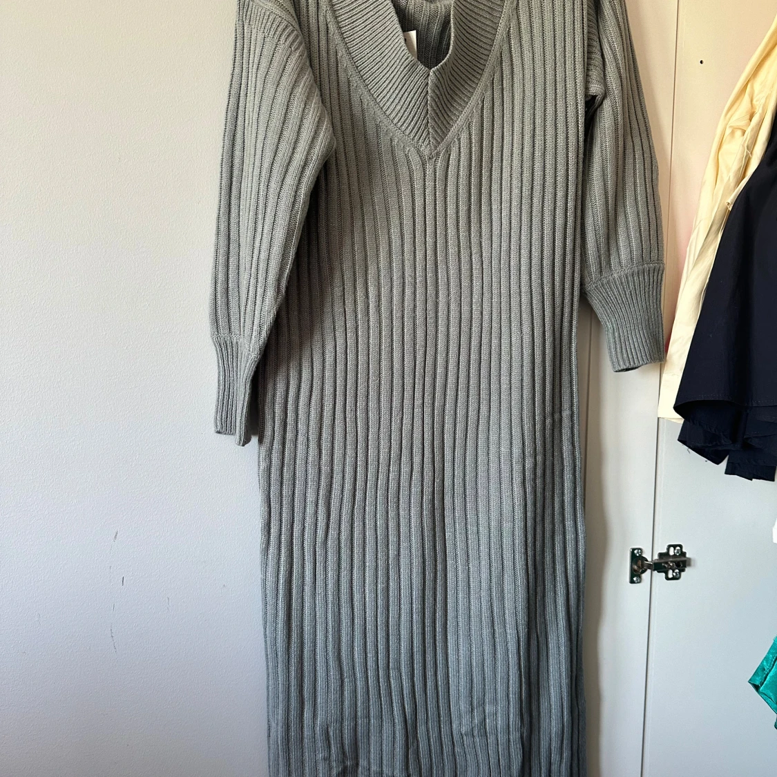 Grå ribbstickad långklänning H&M