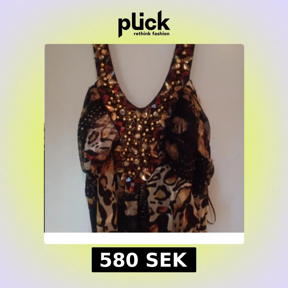 Jätte vacker klänning som är perfekt för balen eller fester. Mycket 2000s vibes och fina bruna gula stenar. Den knyts runt nacken och är halterneck. Passar S - M. Säljer den för 580 men kan absolut diskutera pris. Är inte använd.