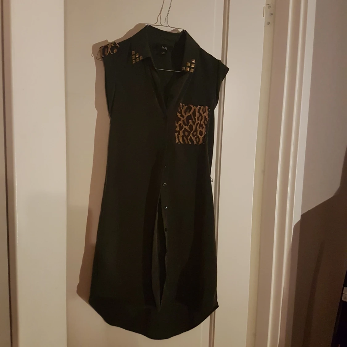 Militärgrön klänning + leopard detaljer som jag själv sytt. Det har flera år men jag har aldrig använt det. Mycket bra skick!