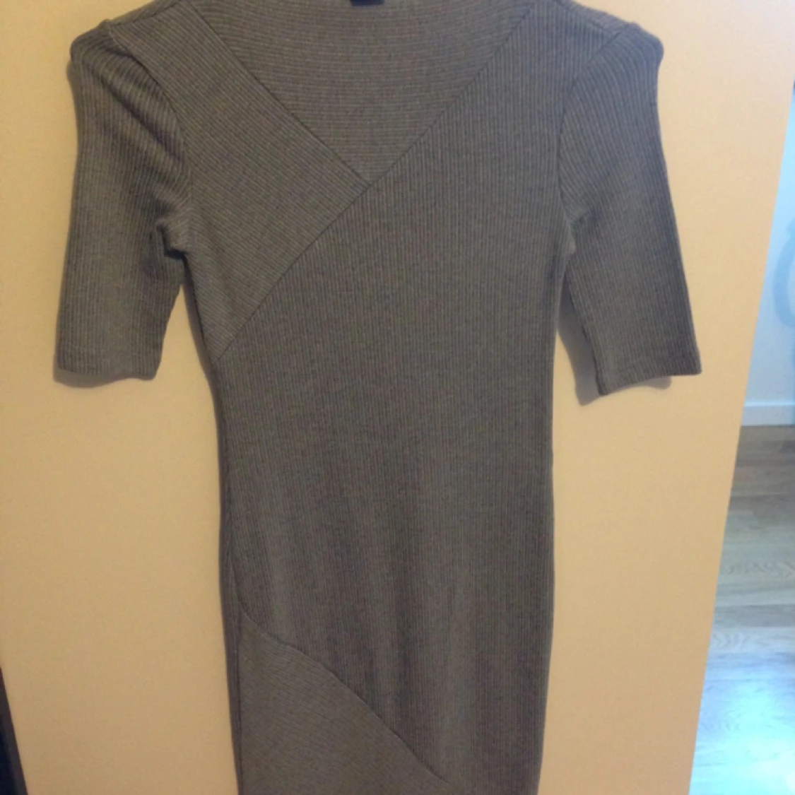 Ljusgrå ribbstickad tight fodralklänning med lite båthals från h&m trend. Storlek 34 och slutar strax nedanför knäna på mig (1,62 lång) lite längre t-shirt ärm och endast använd 1 gång. Mycket fint skick!