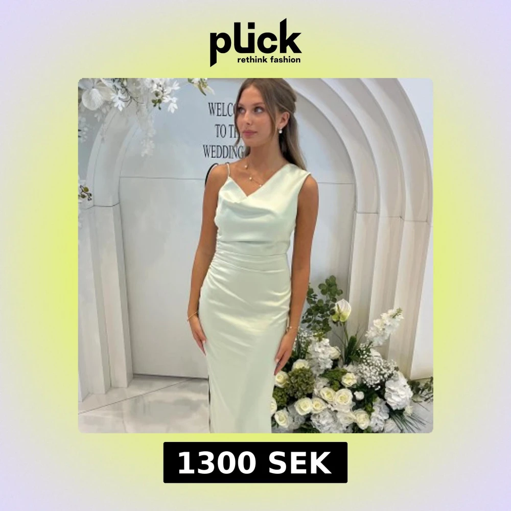Supersnygg ljusgrön långklänning i satin från Adoore. Använd en gång