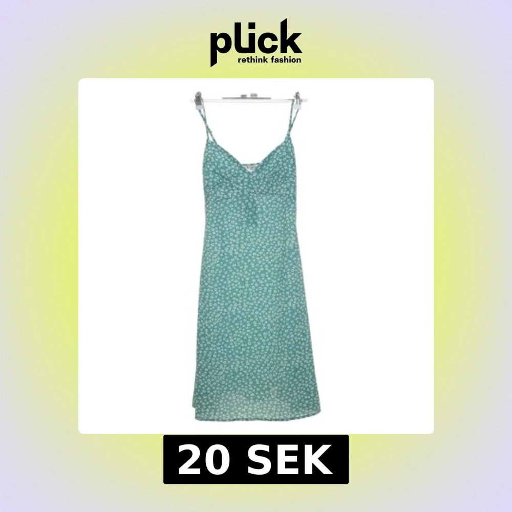 Söt grön klänning med vita små blommor från Belle Vannes. Klänningen har smala axelband och v-ringad halsringning. Perfekt för varma dagar och har en lätt, luftig känsla. Sömmen har gått sönder vid v-ringningen men går lätt att fixa med något stygn eller säkerhetsnål
