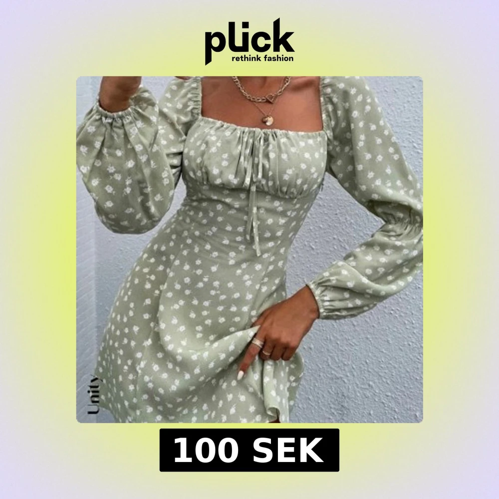 Säljer en superfin grön klänning med blommigt mönster. Den har långa ärmar och en söt knytning framtill. Perfekt för vår och sommar! 🌸