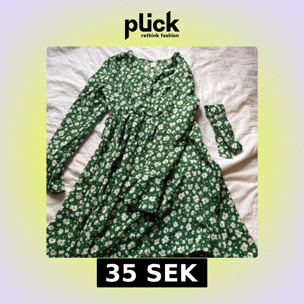 Söt grön klänning med vita blommor från Shein. Klänningen har långa ärmar och ett knytband i midjan för en fin passform. Perfekt för vår och sommar! Använd 2 gånger🫶🏼