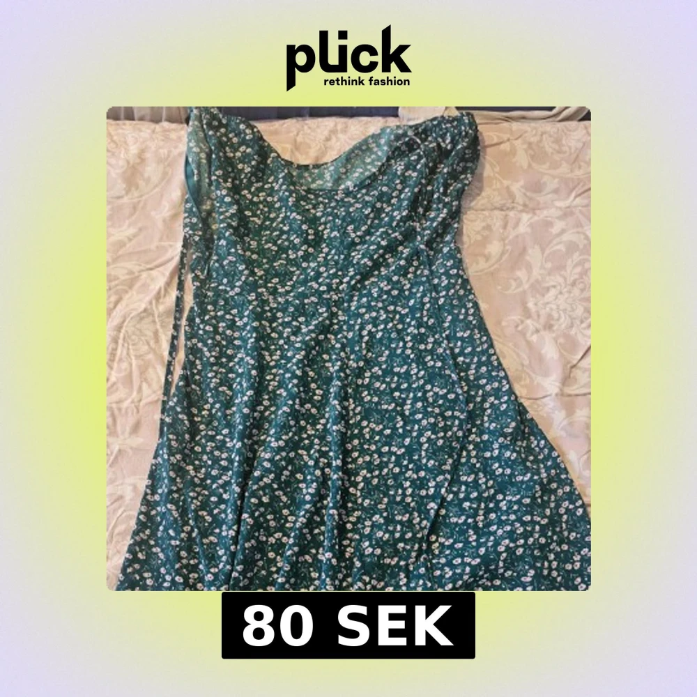 Snygg långklänning i grönt med små vita och rosa blommor över hela tyget. Klänningen har en luftig passform och är perfekt för varma dagar. Materialet känns lätt och svalt, och mönstret ger en romantisk vibe.