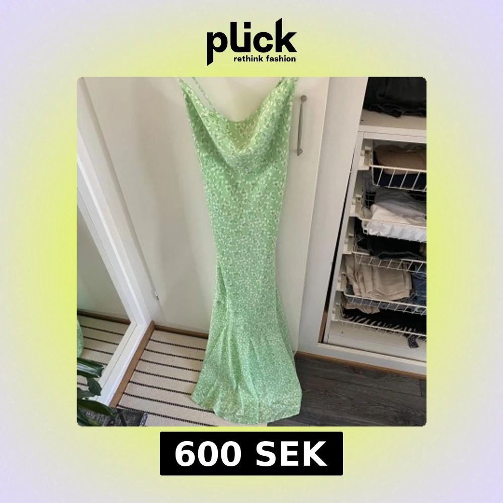 Superfin långklänning i ljusgrönt med små vita blommor. Klänningen har smala axelband, öppen rygg med snörning och en lätt utsvängd siluett. Perfekt för sommarens alla tillfällen. Prislapp finns kvar