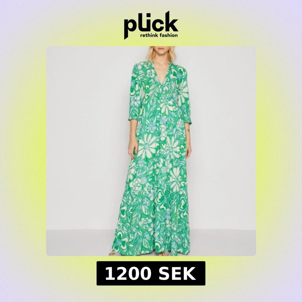 Superfin långklänning i grönt med stort blommigt mönster i vitt och ljusblått. Från Fabienne charpot. Köpt för 2500kr och aldrig använts✅
