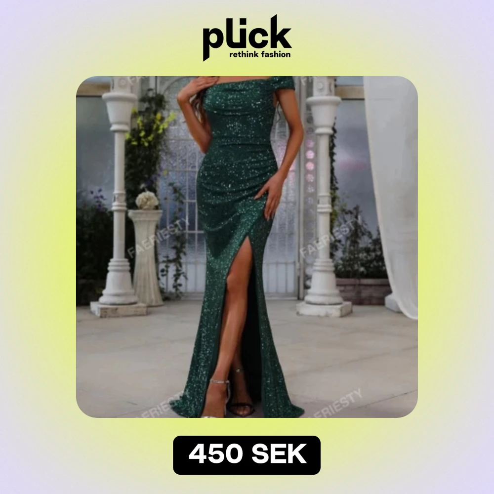 Säljer denna fina gröna glittriga klänningen från shein då den var för stor för mig och aldrig kom till användning, kontakta mig för fler frågor annars använd köp nu 🤗🙌🏼
