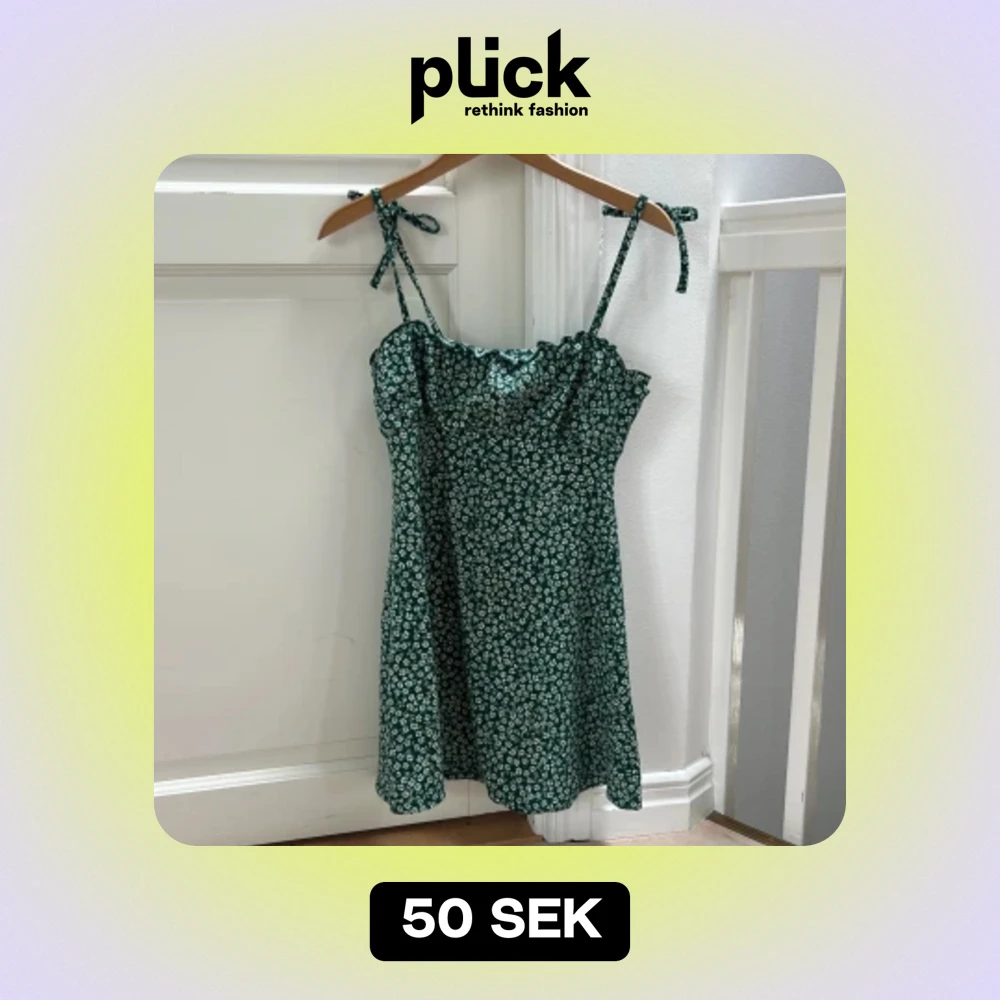 Grön miniklänning med vita små blommor.