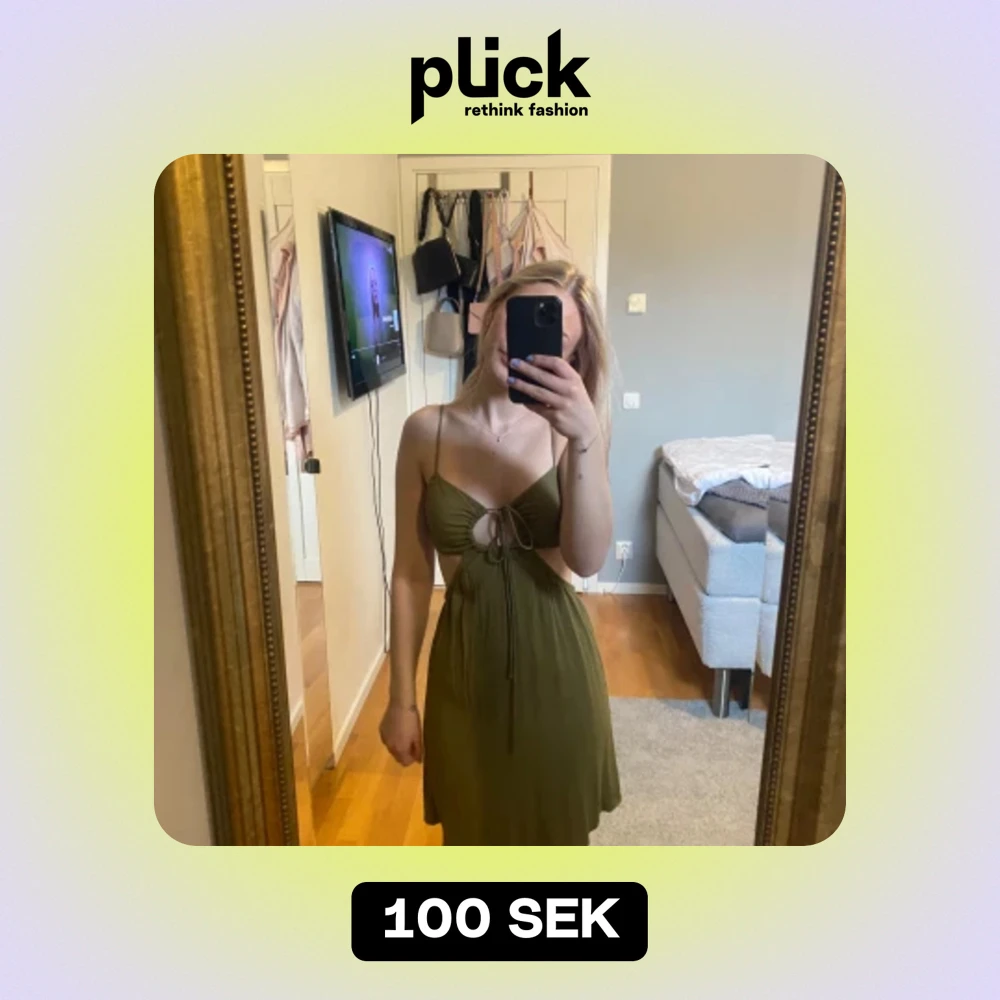 Säljer denna jättefina olivgröna klänning som aldrig är använd💗