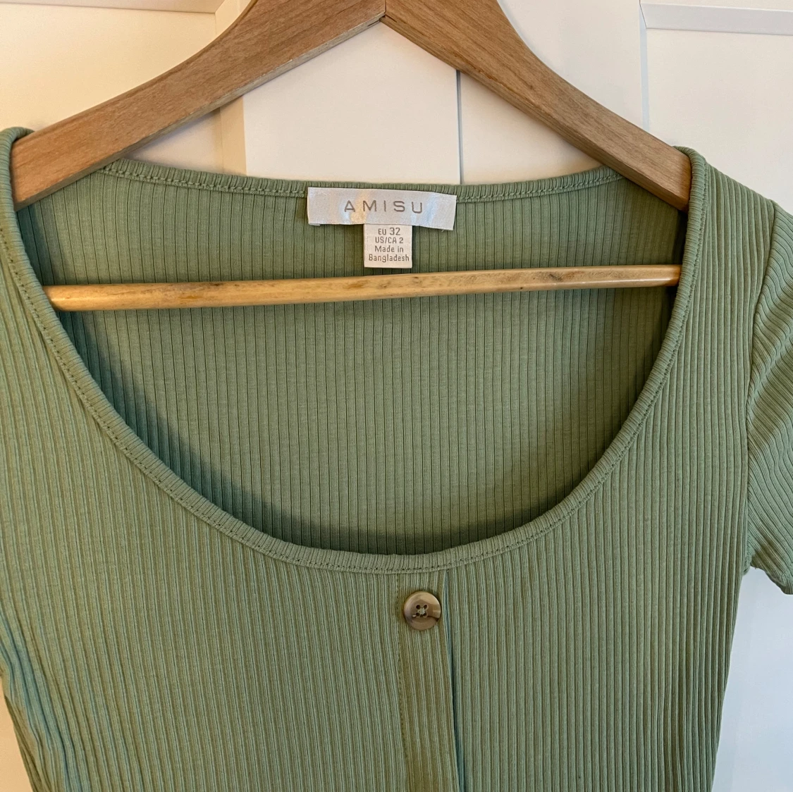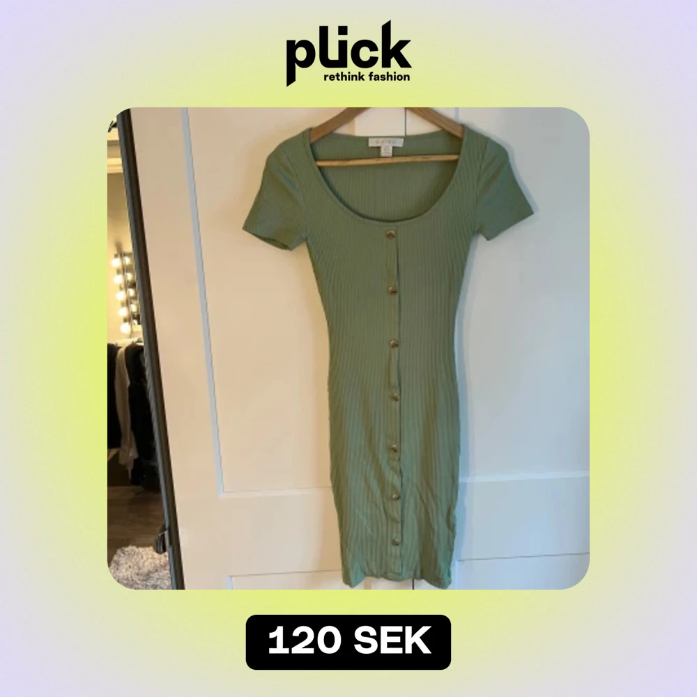 Säljer en ribbad grön klänning från NewYorker i storlek 32. Väldigt strechigt material och passar därför många storlekar. Aldrig använd