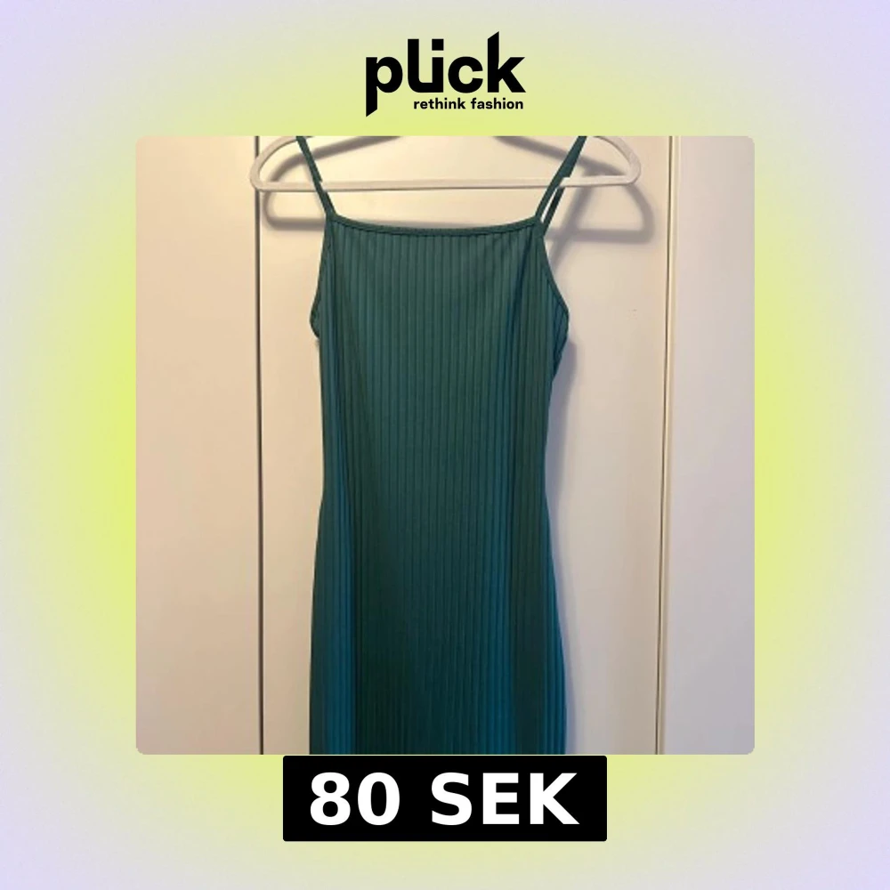Snygg grön klänning med smala axelband och rak passform. Klänningen är kort och har en enkel, stilren look som passar perfekt till varma dagar. Materialet känns mjukt och följsamt mot kroppen