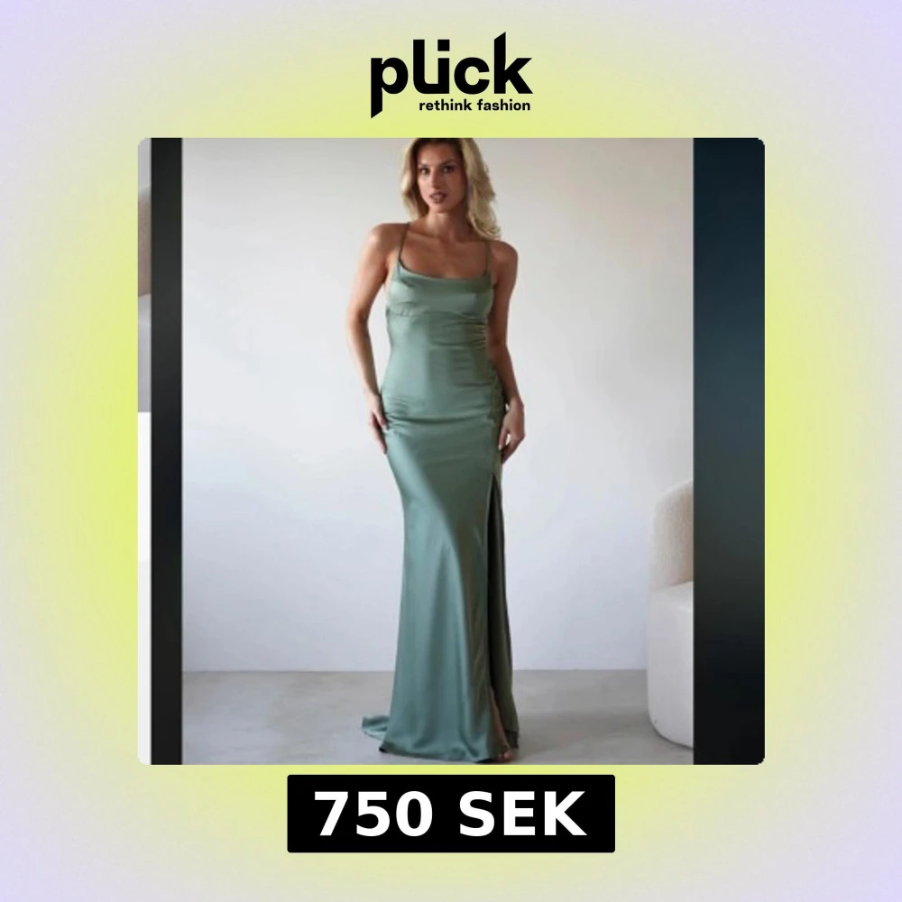 Helt ny och oanvänd satinklänning från Oh Hello Clothing. Perfekt inför ett bröllop eller balen i ljusgrön nyans med smala axelband som korsas i ryggen. Klänningen har en tight passform, slits på sidan och öppen rygg med knyt. Skriv privat för fler bilder eller hur den sitter på💕Pris kan diskuteras