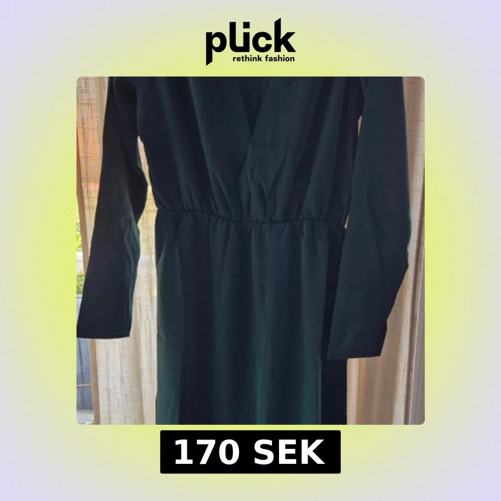 Helt ny. Härlig grön färg med en knäppning, en liten slits vid armslutet och är lite tjockare vid axeln, se bilder. Katt finns i hemmet.