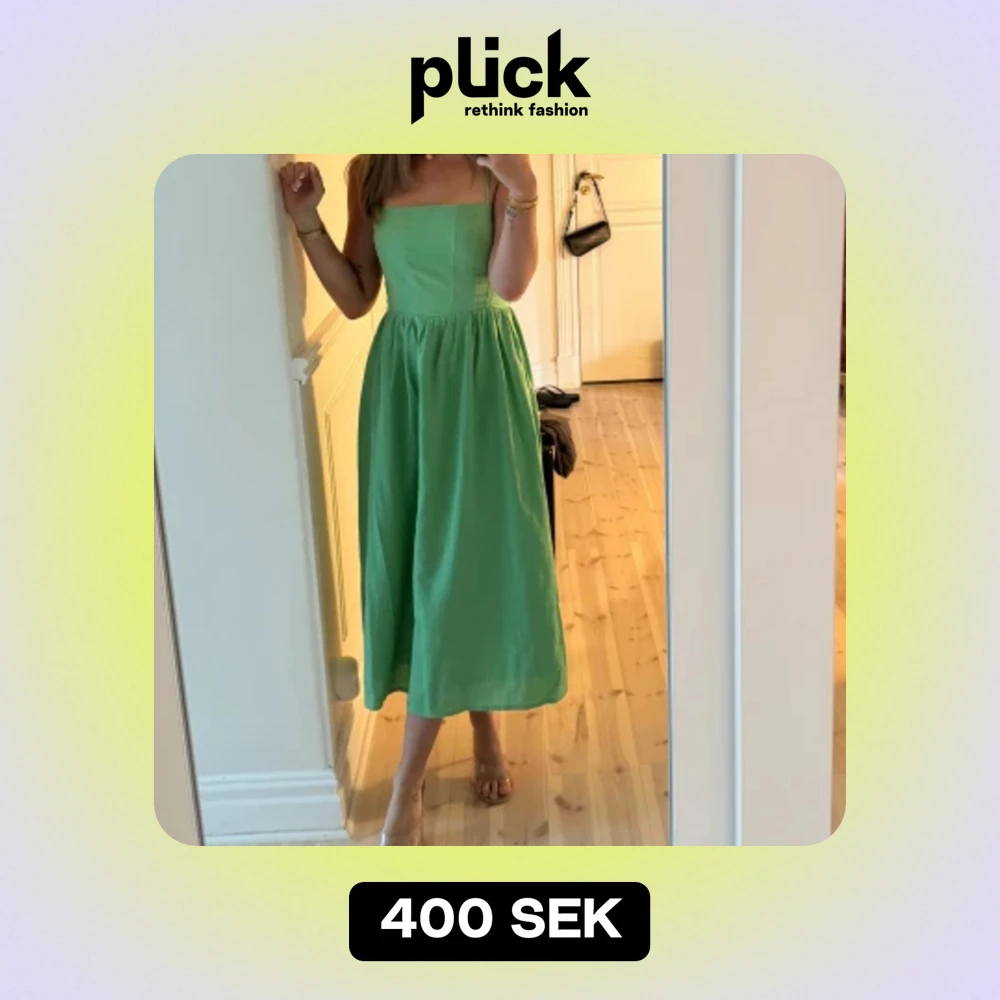 Grön klänning i linne från HM. Använd en gång!