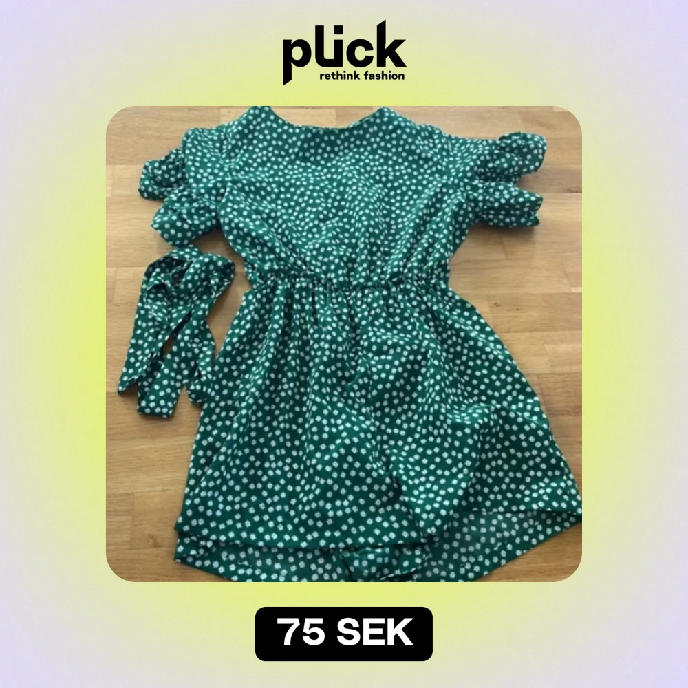Säljer en grön byxdress med vita prickar. Den har en kort längd och har söta volangdetaljer på axlarna. Byxdressen är perfekt för sommarens alla fester och är gjord av ett lätt och skönt material. Den kommer också med ett matchande bälte för att framhäva midjan.