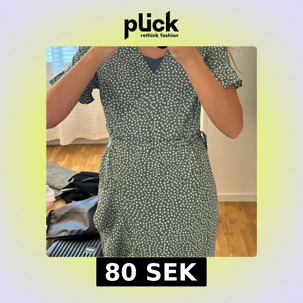 Snygg grön omlottklänning från Vero Moda i storlek XS. Klänningen har vita prickar, volangdetaljer vid ärmarna och knyt i midjan. Modellen är kortärmad och har en v-ringad omlottfront. PRIS GÅR ATT DISKUTERA 💚💚