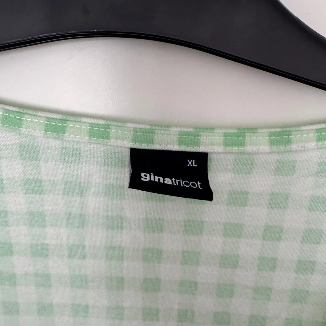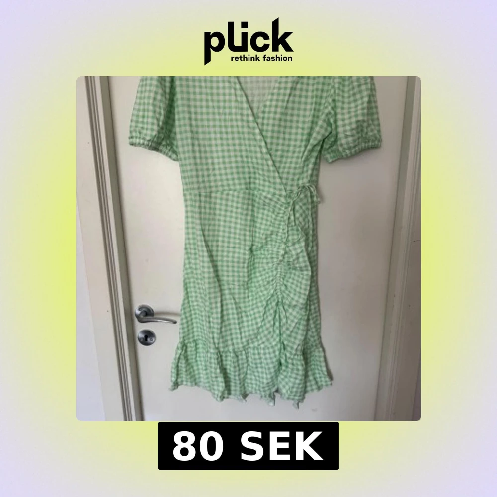 Grön rutig klänning från Gina Tricot med omlott-design och volangdetaljer. Klänningen har korta ärmar och ett knytband i midjan för en smickrande passform. Perfekt för sommaren