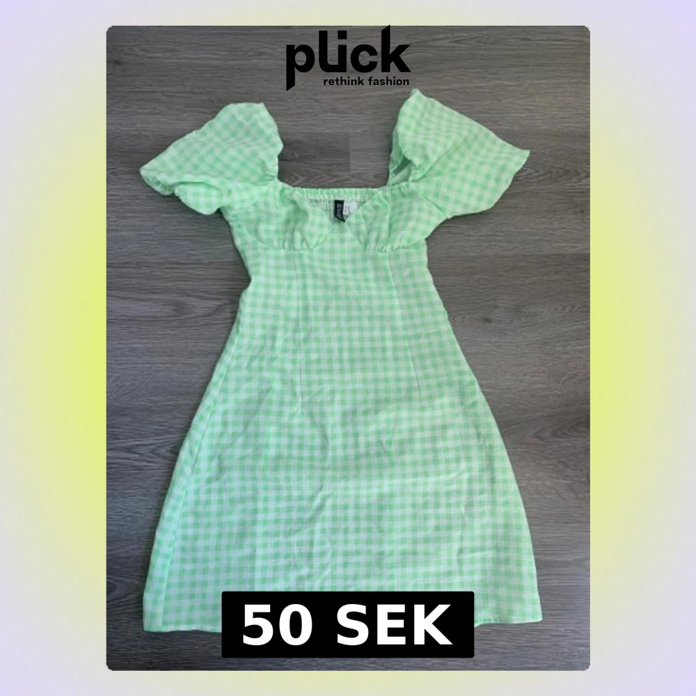 Superfin ljusgrön och vit rutig klänning från H&M i storlek XS. Klänningen har puffiga korta ärmar och en söt, figurnära passform. Perfekt för vår och sommar med sitt lätta bomullsmaterial och fräscha färg.