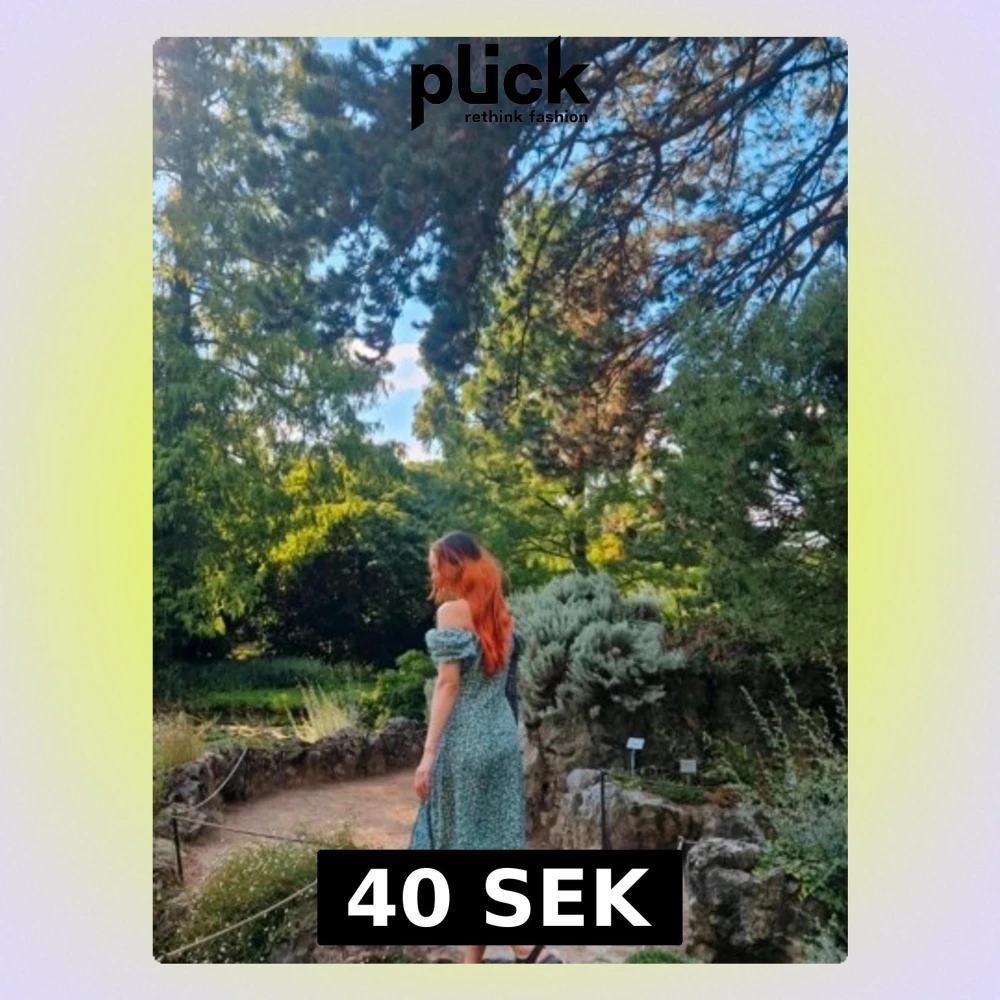 Gullig grönblommig klänning i tunt material. Puffiga ärmar som kan sitta uppe på axlar eller off the shoulder. Slit i ena nedre kanten och dragkedja bak. Mycket fint skick. Köptes i nyskick här på Vinted, säljer vidare då strl större passade mig bättre.