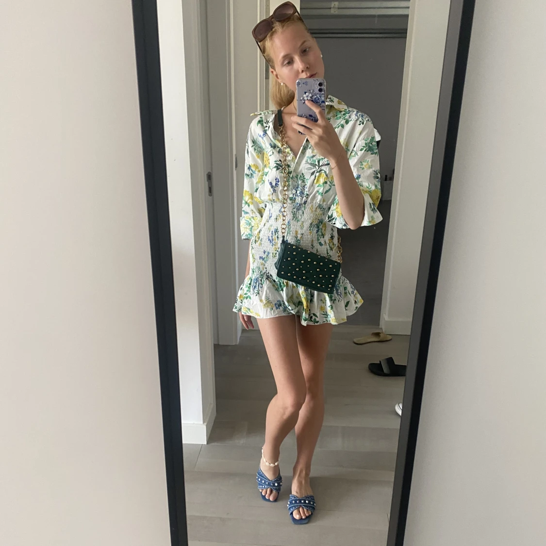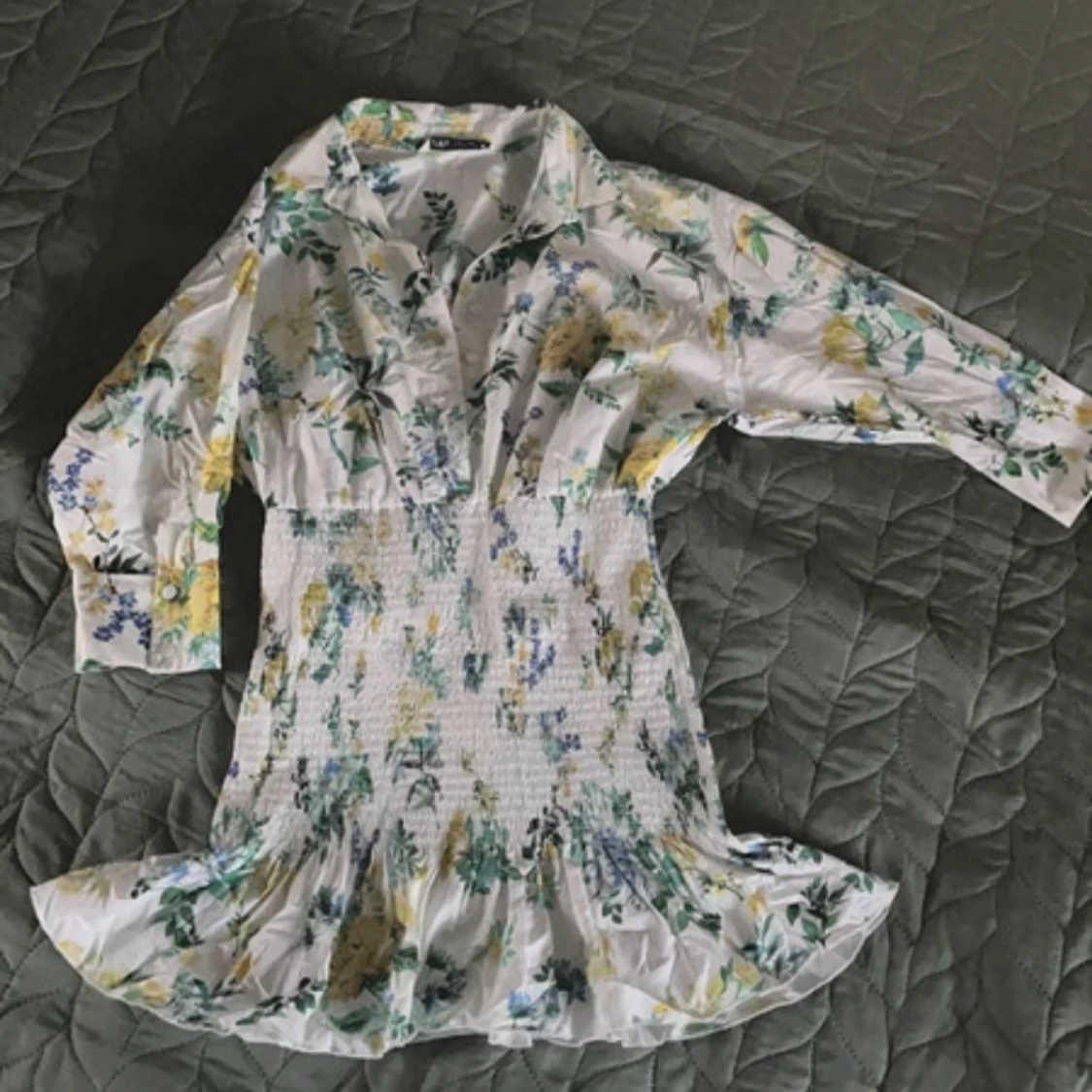 Super fin skjortklänning från zara😍😍 endast använd 1 gång och är helt i nyskick. Sitter perfekt med smock nedtill och skjortöppning💓 är i storlek S och passar bra på mig med som är 176 cm🤩💓