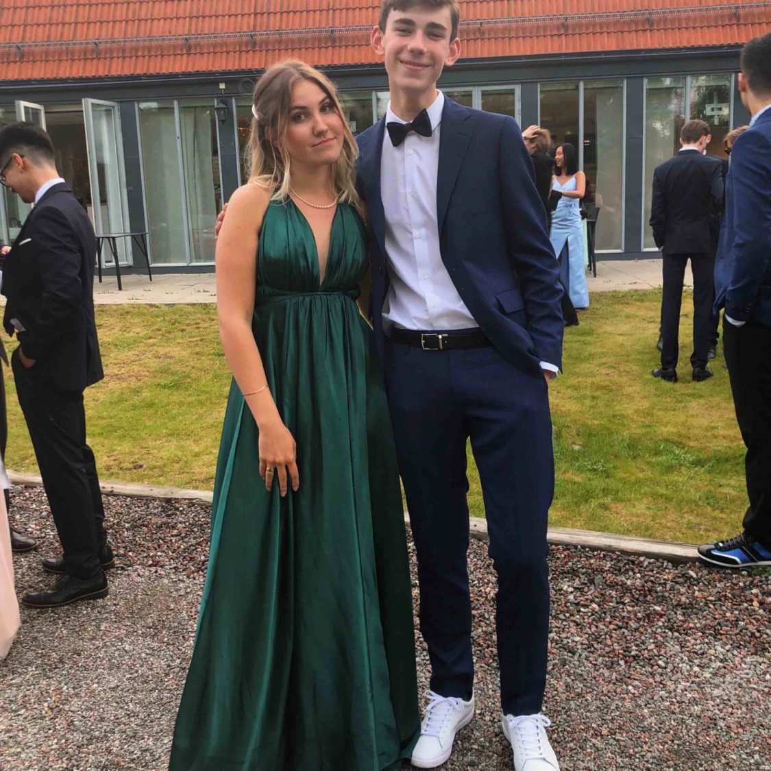 Säljer min superfina balklänning. Den är verkligen så vacker men bilderna gör den inte rättvisa eftersom det var molnigt på min bal Köpt för 2000kr och sydd efter min längd, jag är 170 men den är lite för lång.