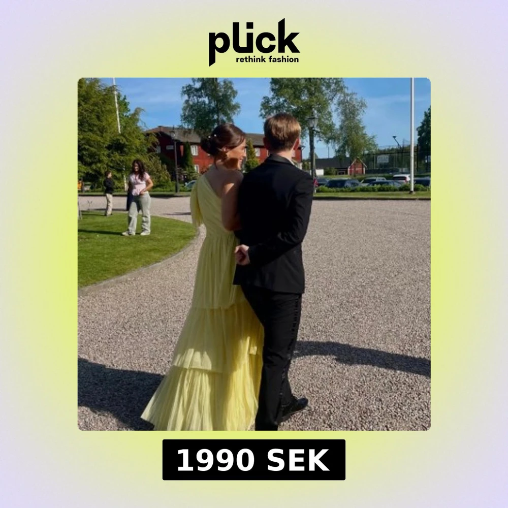 Säljer en drömmig gul långklänning med lager på lager av volanger och oneshoulder-design. Unik då den är omsydd hos en skräddare då den från början har en slits, har lämnat in den på kemtvätt, jag på bilden är 172 och bärde klack på 4cm, den är verkligen drömmig🤩🤩