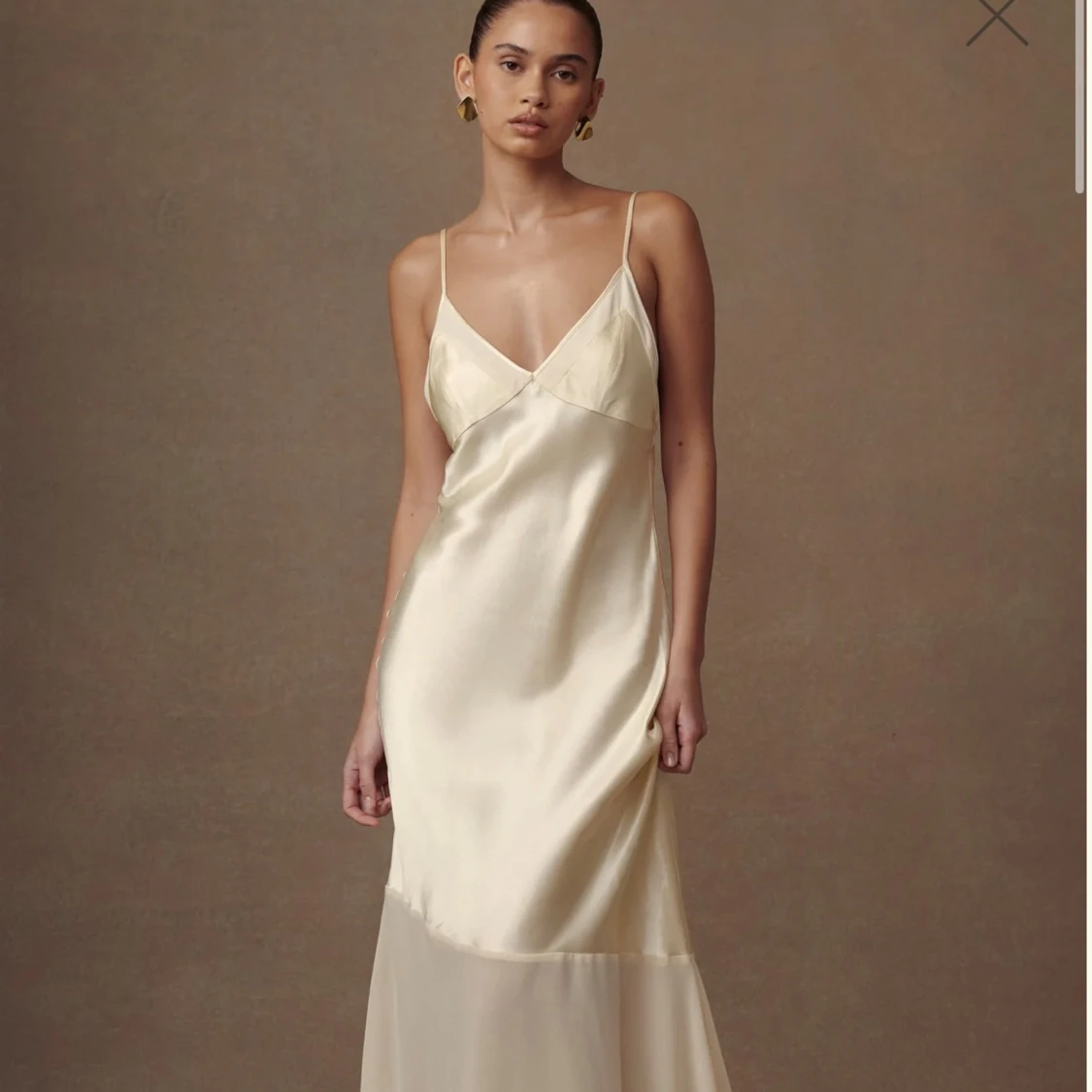 Säljer nu min fina balklänning. Det är en satin klänning i en lätt gul färg. Inköpt förra året inför en skiva och därmed endast använd vid ett tillfälle. Klänningen är tvättad en gång och steamad. Klänningen är djup i ryggen.
