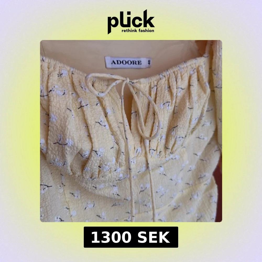 Charmig gul klänning från ADOORE med blommigt mönster och puffiga kortärmar. Klänningen har en knytning framtill och rynkade detaljer längs sidorna för en smickrande passform. Perfekt för soliga dagar!