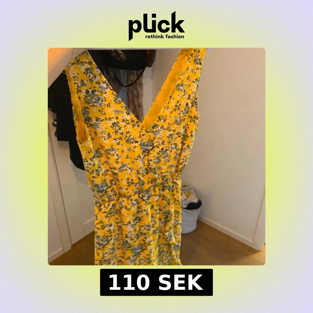 Superfin gul klänning från Samsøe Samsøe med blommigt mönster i blått och vitt. Klänningen är ärmlös, har v-ringning och markerad midja. Perfekt för sommarens alla tillfällen och ger en riktigt fräsch vibe.