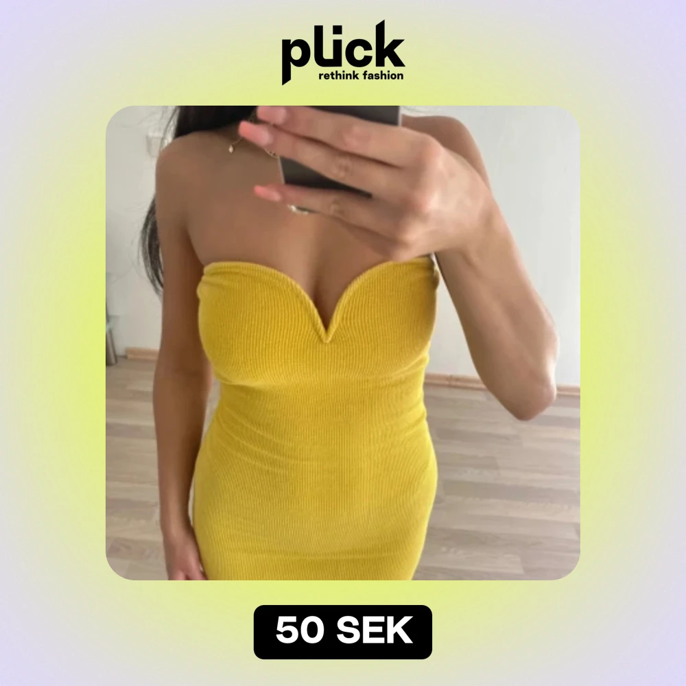 säljer denna super snygga gula hjärtformade klänningen. Formar kroppen super fintn