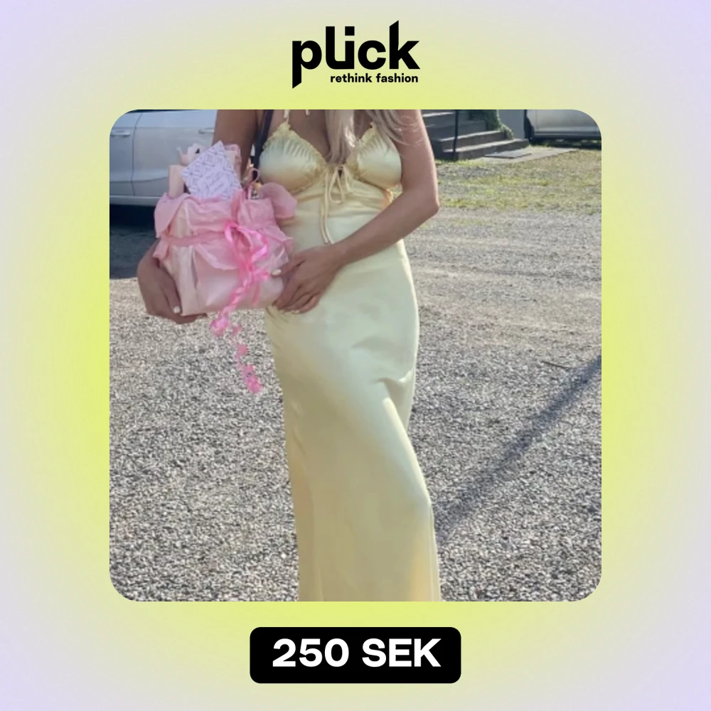 Säljer min gula satin klänning, den är använd en gång bara. Jag är 1,68 och den är uppsydd 🥰