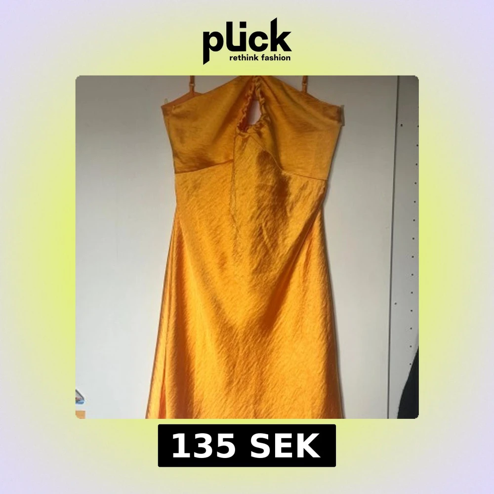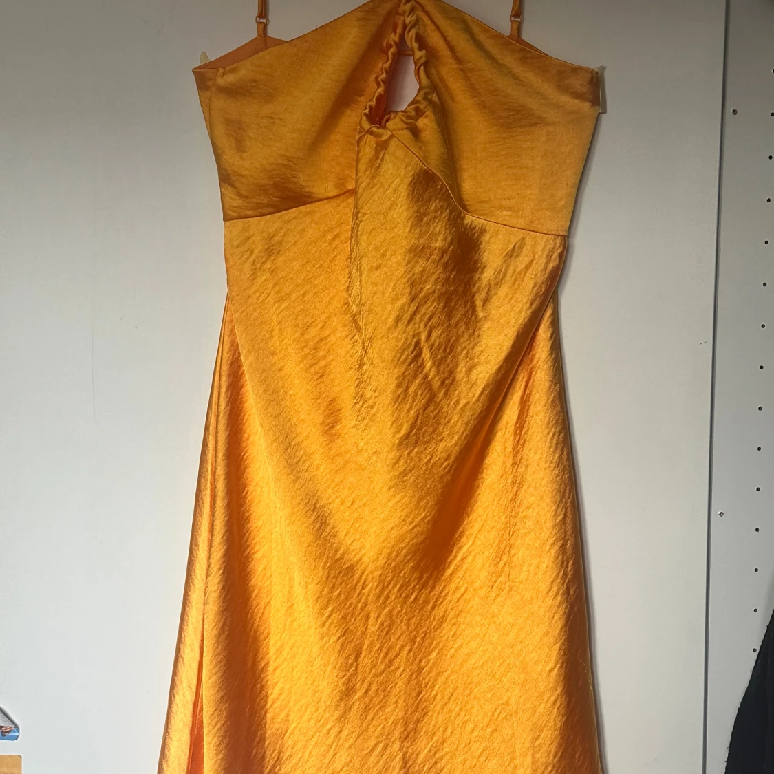 Superfin gul långklänning från Gina tricot med snygg cut-out och knytning i ryggen. Klänningen har en glansig satinliknande yta. Perfekt för dig som vill sticka ut med färg och coola detaljer.
