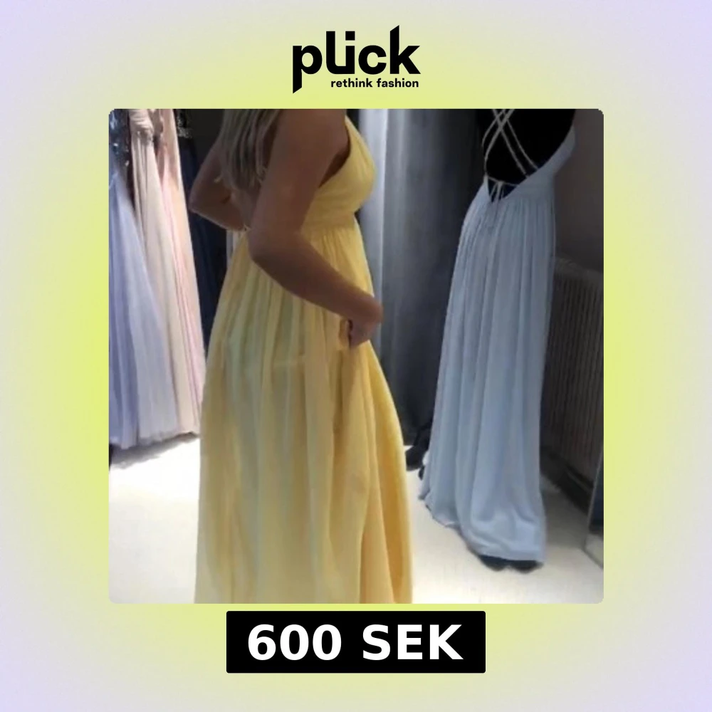 Säljer en drömmig gul långklänning med v-ringad front, tunna band med knytning där bak. Köptes för några år sedan till min bal men användes aldrig. Köpte klänningen på en butik på Södermalm (you me fashion) som skapade utifrån mina önskemål