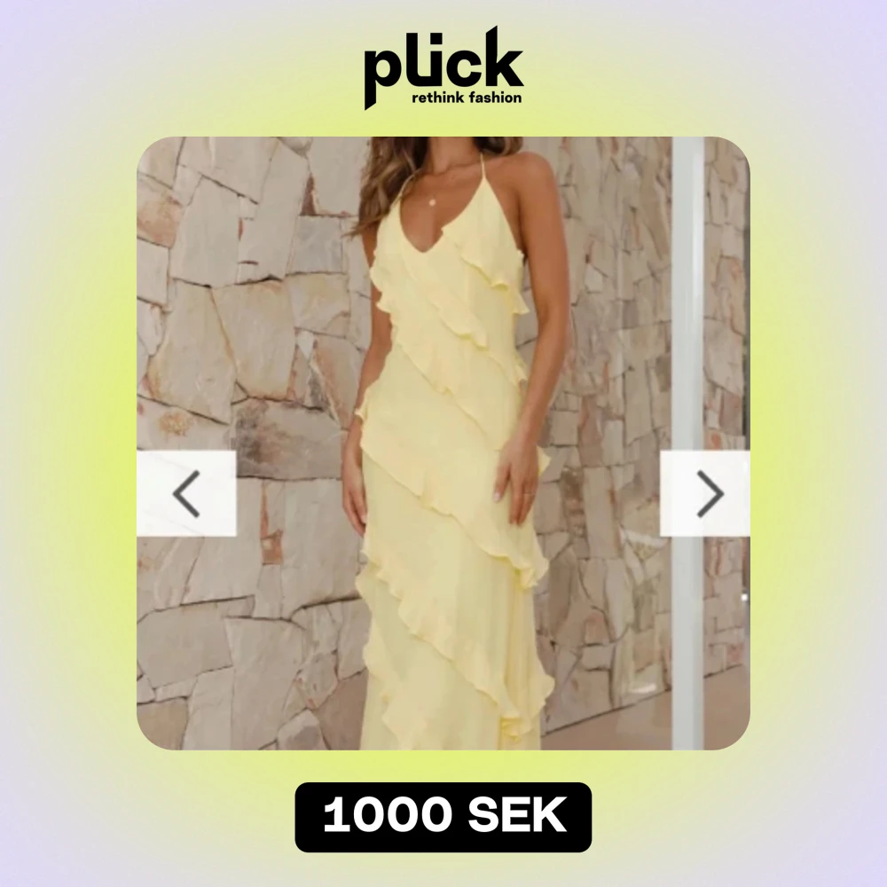 Säljer denna så fina gula balklänningen eftersom jag hittat en annan, aldrig använd med prislappen kvar 💕 storlek S Skriv för fler bilder