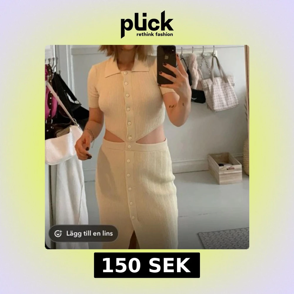 Trendig gul klänning med ribbad struktur, korta ärmar och klassisk krage. Klänningen har snygga cut-out-detaljer i midjan, knappar framtill, slits nertill och öppen rygg. Perfekt för dig som gillar en modern och stilren look.