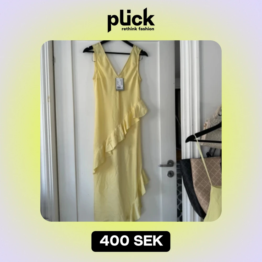 Säljer min gula volangklänning från H&M i storlek XS, aldrig använd med prislapp kvar💛