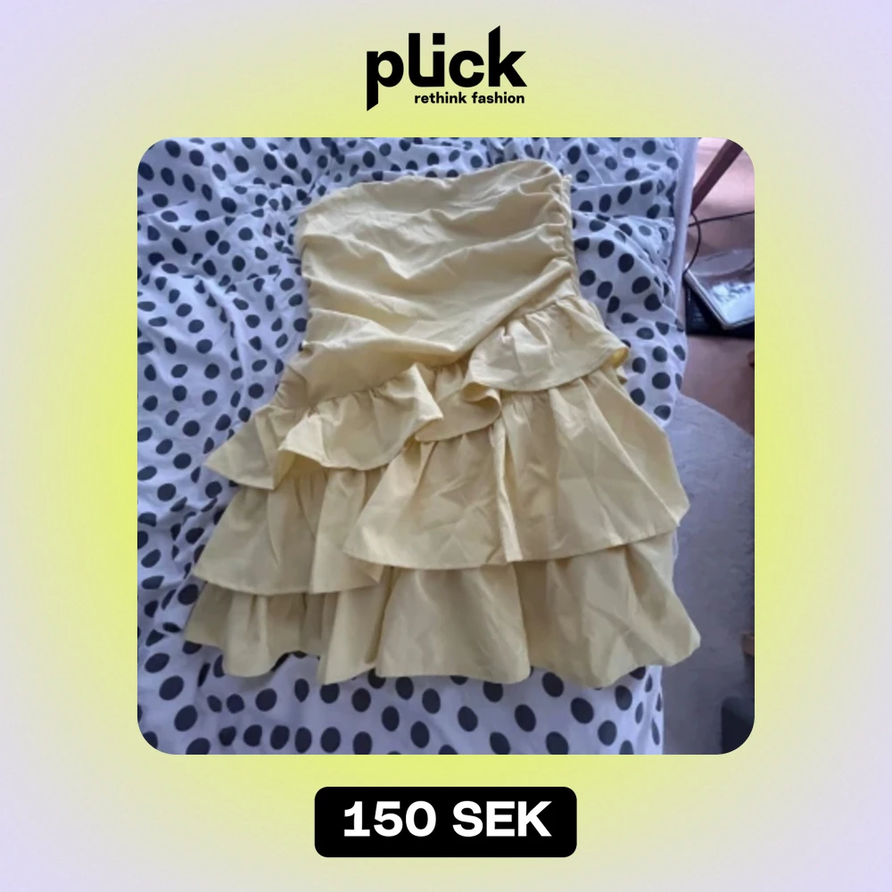 Jättefin kort gul volangklänning, står ingen storlek men passar mig som är M/L