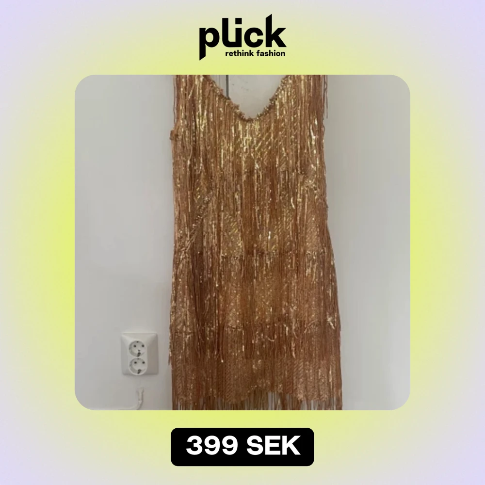 Super fin klänning med guldiga paljetter, endast använd en gång! Köpt för 600kr, hör av dig vid funderingar eller frågor, jag svarar så snabbt jag kan🩷🩷