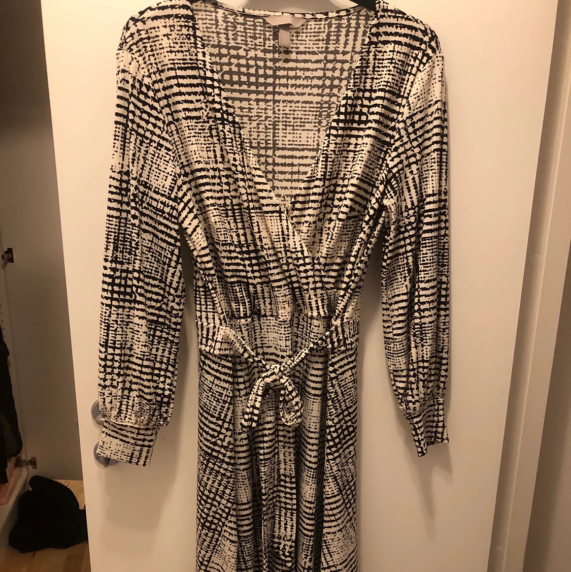 Jättefin classy knälång klänning, har bälte. Köptes från HM men användes knappt 2-3 gånger.