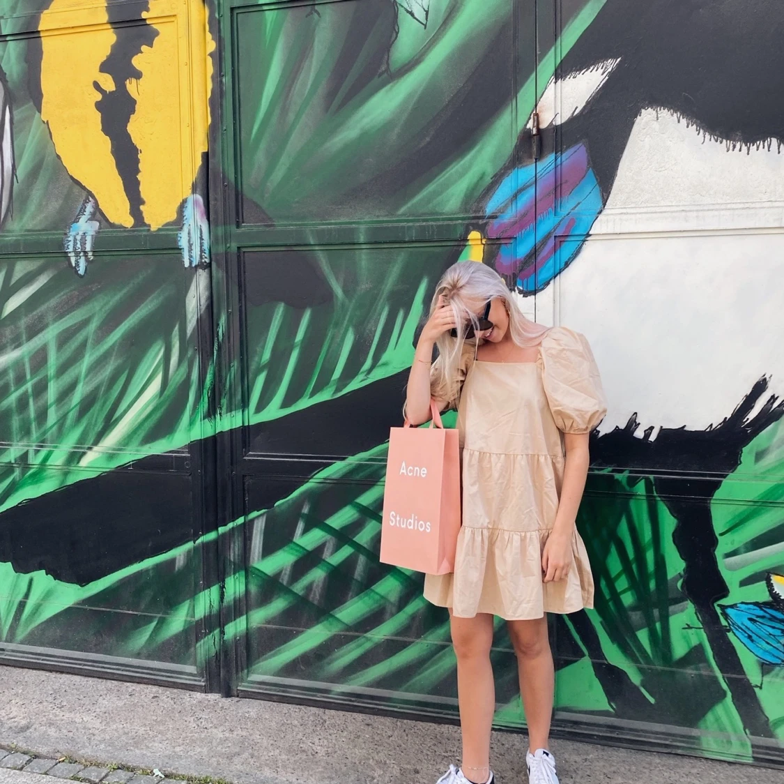 Klänning från hm med puffärm. Riktigt snygg till sommaren! 🤩🤩🤩 Fin beigefärg!