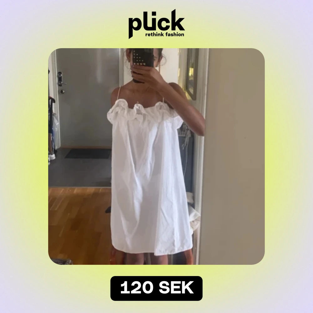 Jättefin och söt vit klänning med volang ifrån H&M😍 Använd fåtal gånger och är i fint skick! Storlek S men passar mellan XXS-S.🤍 Kontakta mig vid frågor💗