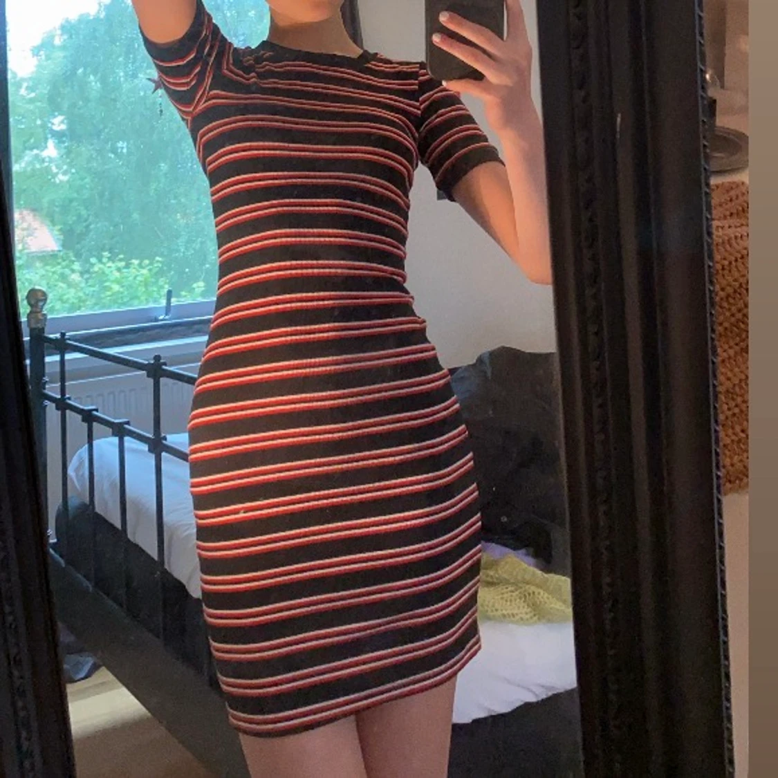 Figurnära, stretchig och kortärmad klänning från hm i strl 34💕 jättefin till sommaren! Mina mått står i min profil🌸