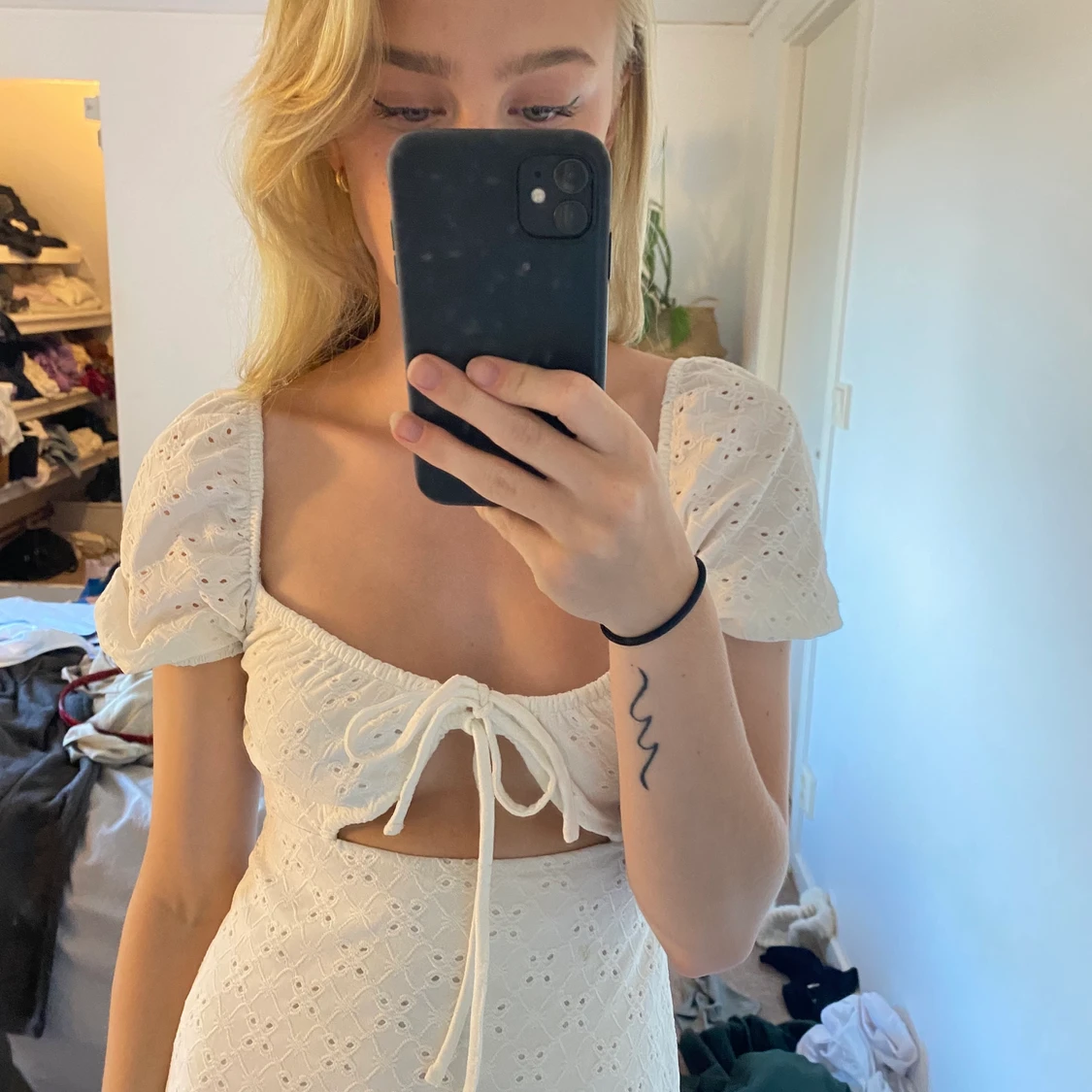 Jättefin vit klänning från hm. Använd ett fåtal gånger. Passar både för mindre och större byst. Passar mellan storlek 32-36