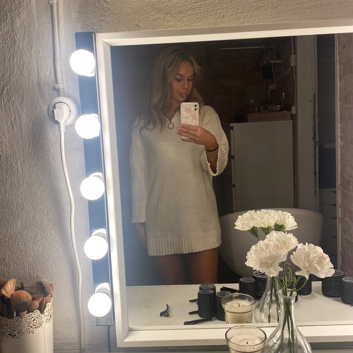 Begie/creamvit stickad känning perfekt nu till hösten i storlek XS Frakt tillkommer Kan mötas upp