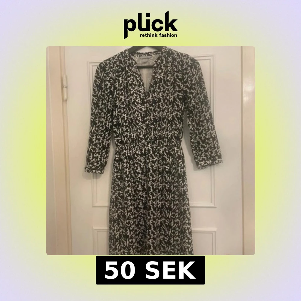 H&M klänning i svart/vitt/blått med knappar,