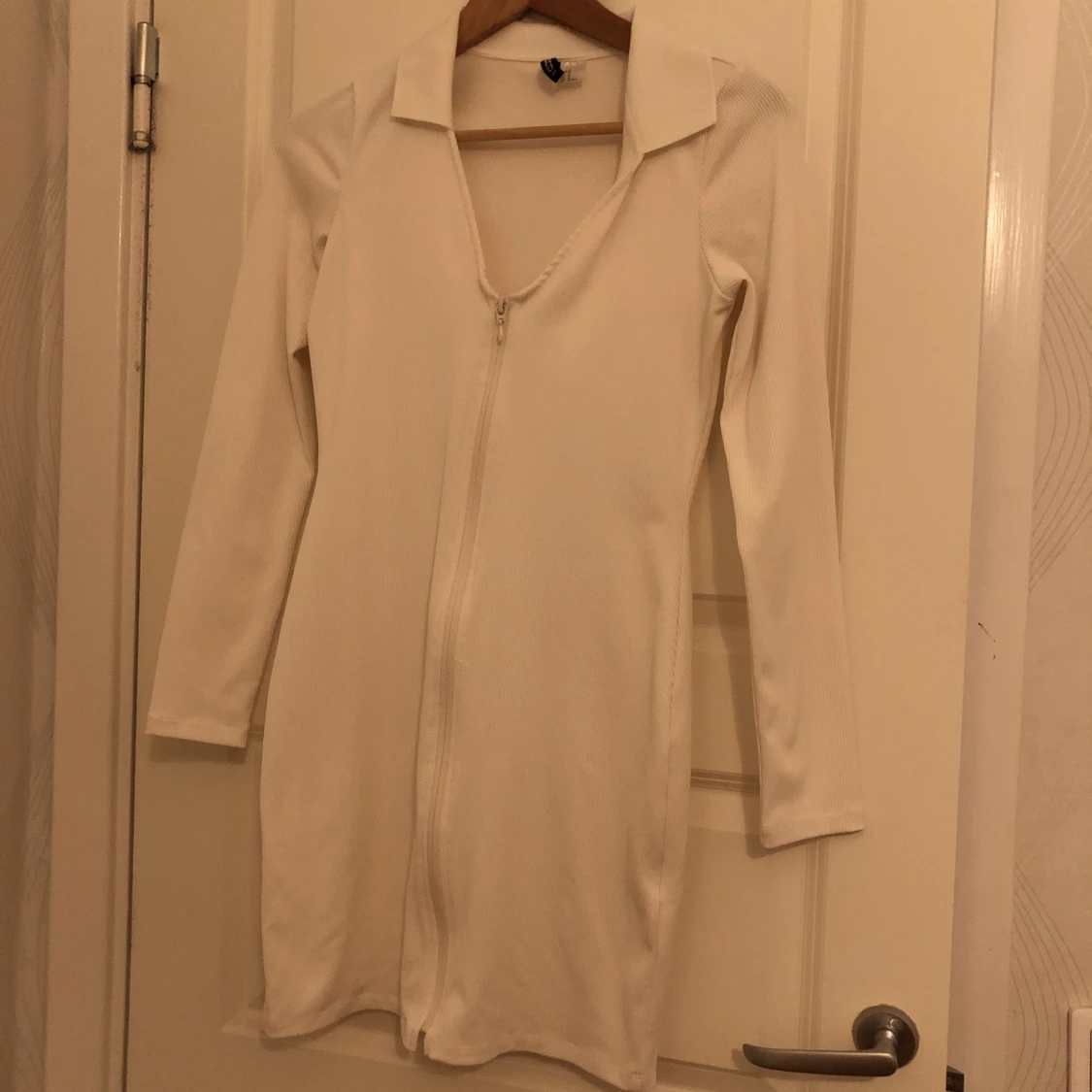 En fin vit klänning med dragkedja i mitten. Storlek M men passar även som en S🌸 Har 2 exakt likadana fast klänningen på bilden är en M (38) och den andra är en S (36)🌸