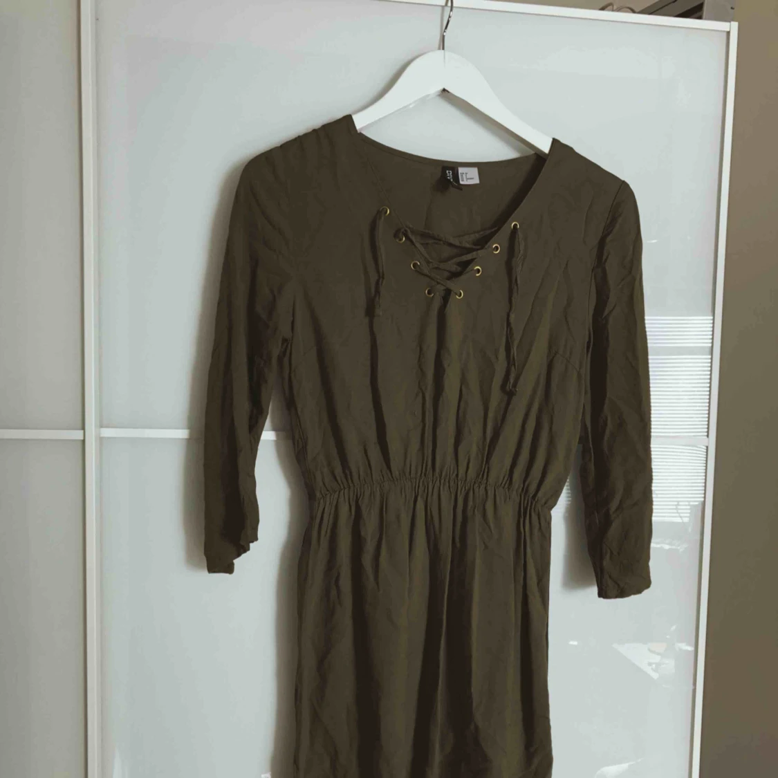 Super skön mörkgrön klänning men snörning på bröstet men guld ringar