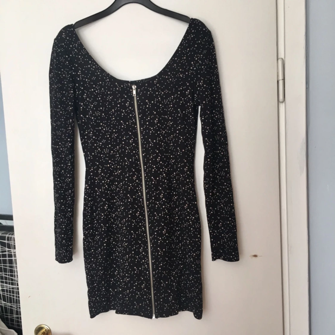 Svart figursydd kort klänning med dragkedja hela vägen ner (använd en gång) Frakt står köparen för, möts annars upp i Stockholm