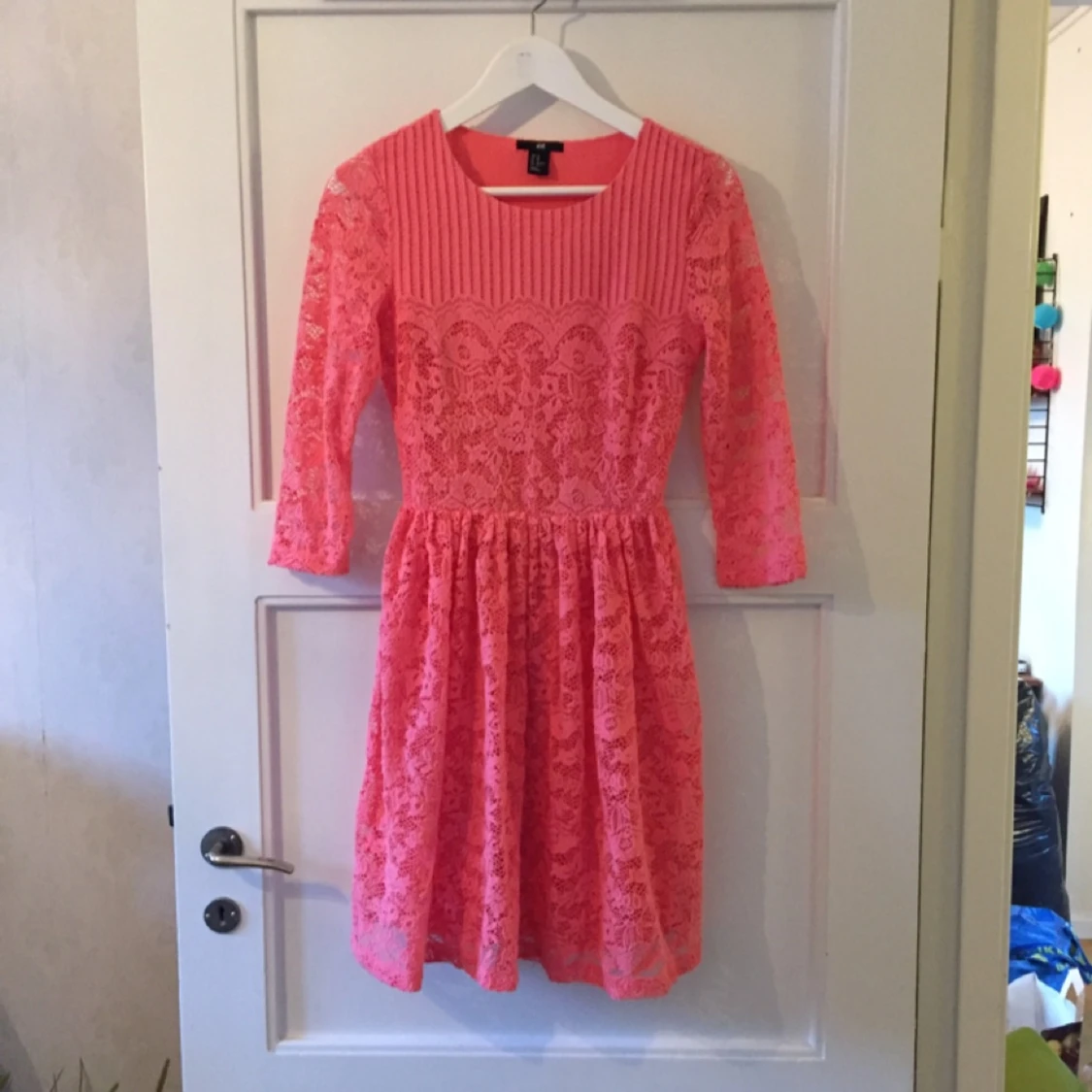 Rosa klänning med spets och fina detaljer. Perfekt för fest eller bröllop.